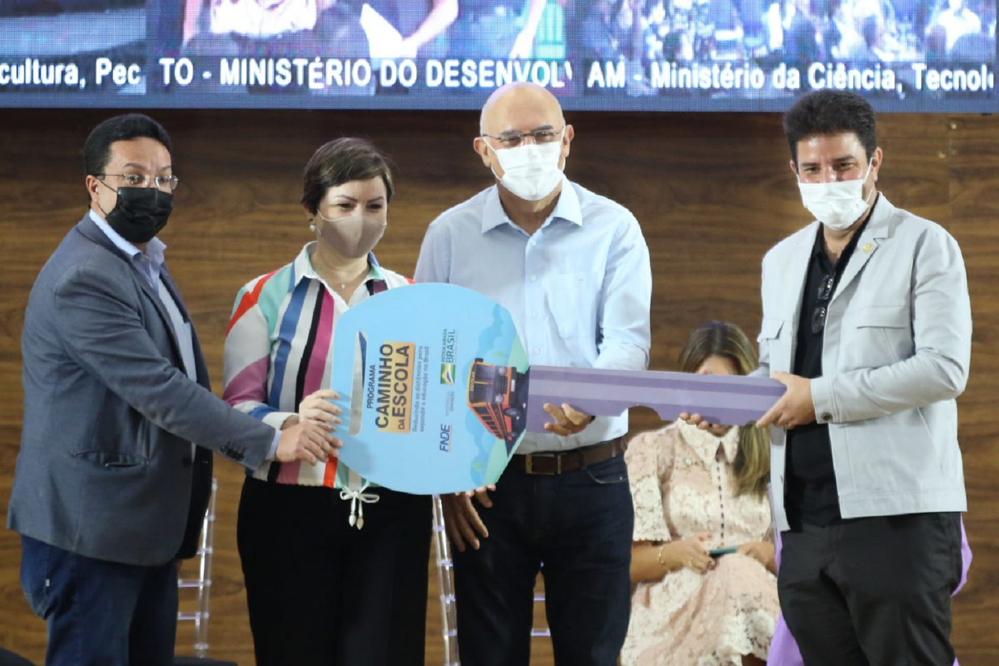 O prefeito de Rio Branco, Tião Bocalom; o presidente do FNDE, Marcelo Pontes; o presidente da Empresa Brasileira de Serviços Hospitalares, Oswaldo Ferreira; os deputados federais Alan Rick, Jéssica Sales, Jesus Sérgio; o senador Sérgio Petecão; a secretária de Educação de Rio Branco, Nabiha Bestene; a reitora da Ufac, Guida Aquino, e a reitora do Instituto Federal do Acre (Ifac), Rosana Cavalcante; entre outras autoridades, também prestigiaram a solenidade.