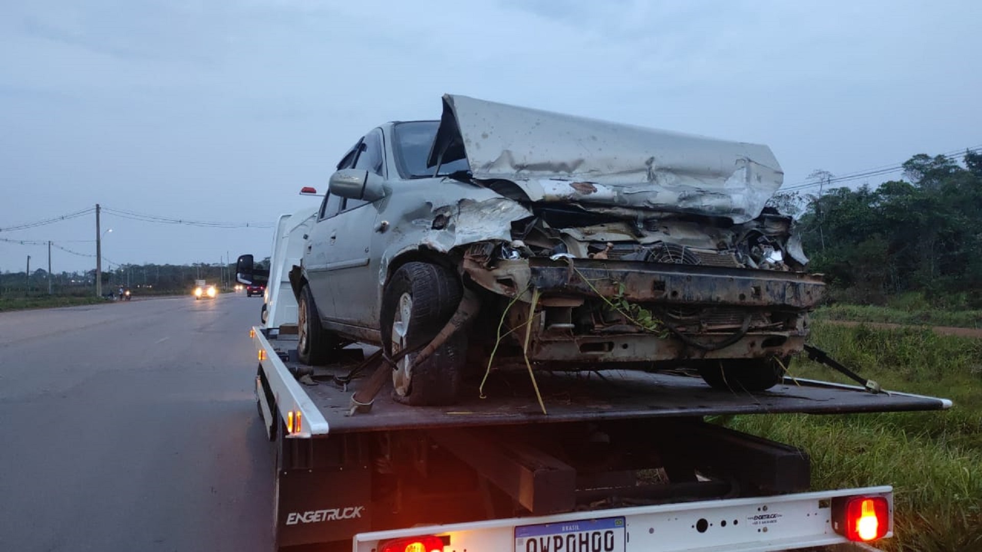 Com o impacto, o carro ficou totalmente destruído. O motorista saiu sozinho do veículo, chamou o guincho e fugiu do local.