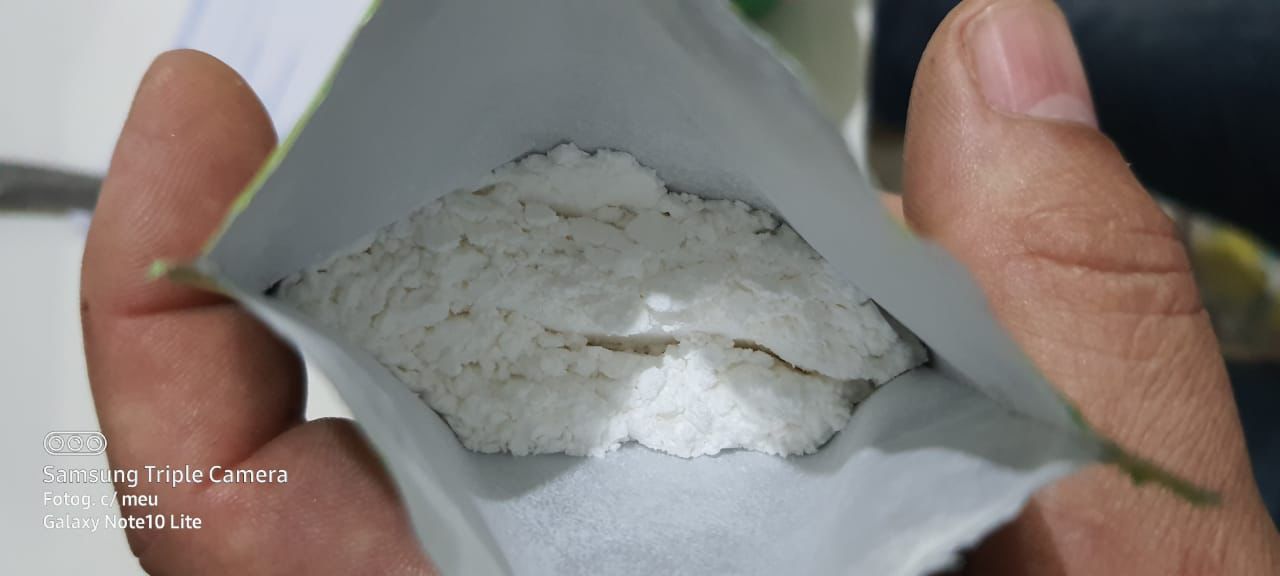 De acordo com as equipes de plantão do Núcleo de Apoio à Família e da Coordenação de Segurança, ao revistar os materiais entregues pela mulher, durante a abertura do pacote de suco, os policiais identificaram a substância aparentando ser cocaína.