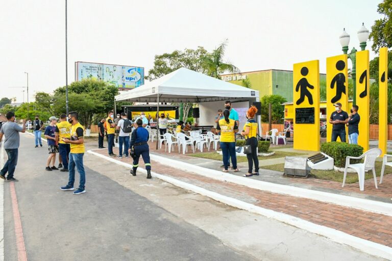 No local foram realizadas blitz educativas voltadas, principalmente, para os motoristas de aplicativos e entregadores, distribuição de panfletos sobre a importância da condução de veículos de forma defensiva, e outras ações.
