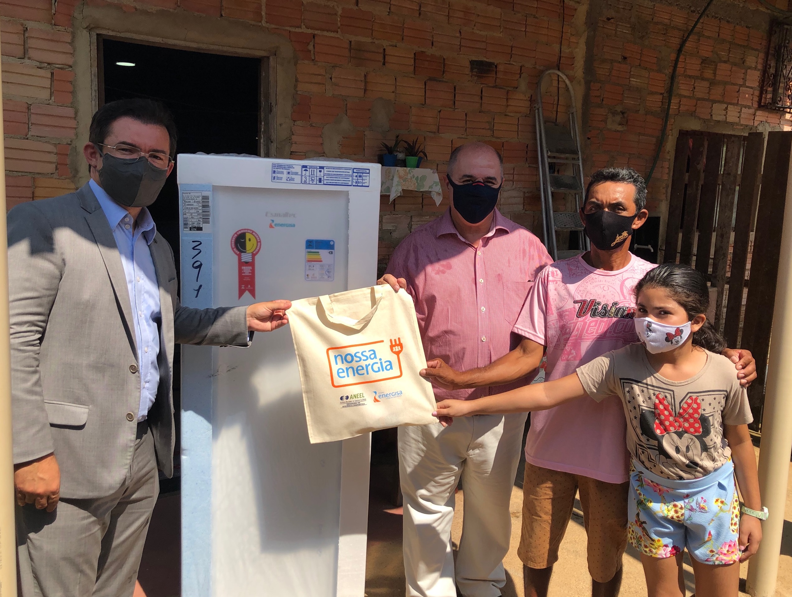 Cem mil famílias de Rondônia estão inscritas na Tarifa Social de energia. A quantidade é quase o triplo de quando a Energisa assumiu a concessão há três anos. Para celebrar o marco, o diretor da Agência Nacional de Energia Elétrica – Aneel, Efrain Pereira da Cruz, e o diretor presidente da Energisa, André Theobald, estiveram na casa de Adenilton Silva de Almeida, morador do bairro Nacional em Porto Velho, nesta segunda-feira (04), para entregar uma nova geladeira pelo programa Nossa Energia, desenvolvido em conjunto pelas instituições.