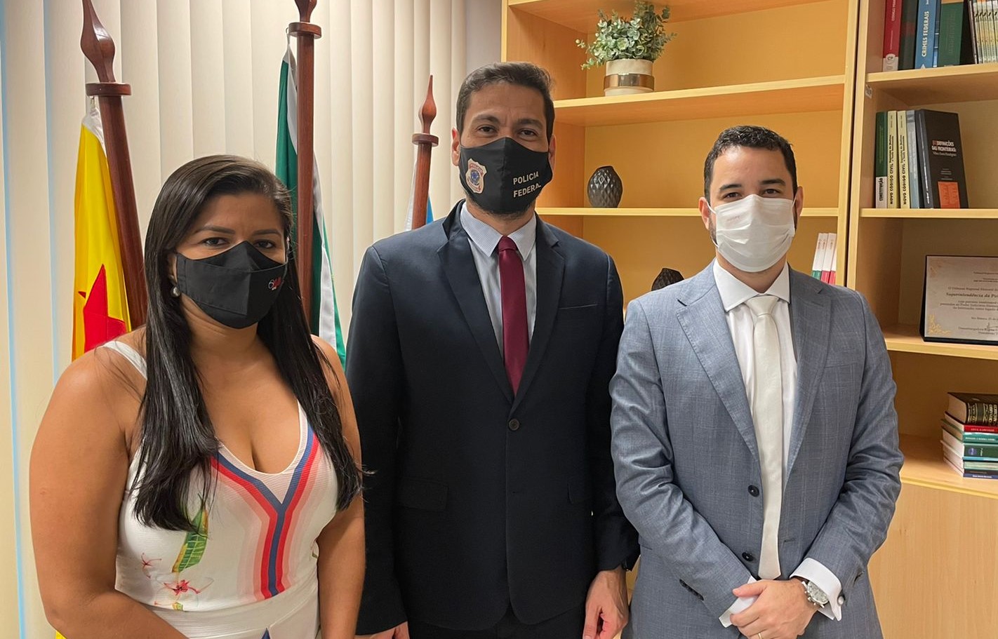 O secretário-geral da Ordem dos Advogados do Brasil Seccional Acre (OAB/AC), André Marques, e a presidente da Comissão de Assistência, Defesa e Prerrogativas, Viviane Santos, reuniram com o superintendente da Polícia Federal (PF), Érico Barboza Alves, na quarta-feira, 28. Em pauta, a solicitação da Seccional para disponibilização de sala de apoio e parlatório na sede da entidade policial.