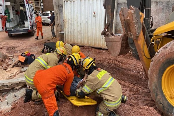 Um operário de 41 anos ficou ferido após parte do muro de uma obra desabar sobre ele na Rua 4-B, em Vicente Pires, na manhã desta quinta-feira (21/10).