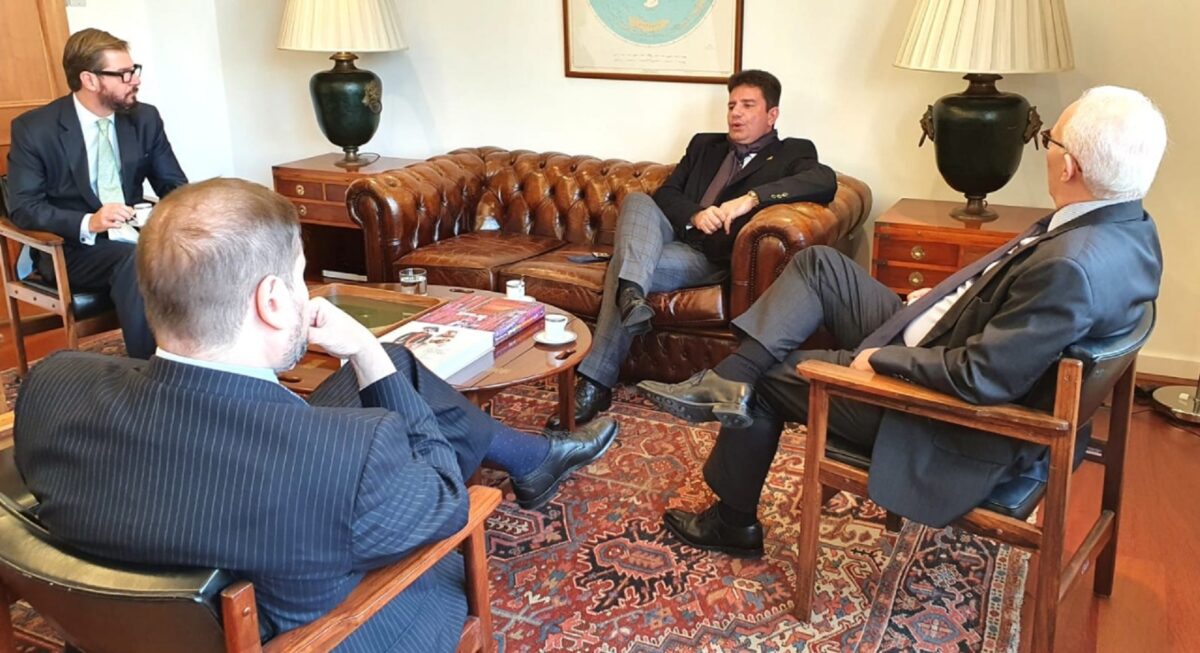 Cameli foi recebido pelo embaixador do Brasil em Londres, Marco Farani e pelo embaixador do Brasil junto ao Reino Unido, Fred Arruda. Foto: cedida