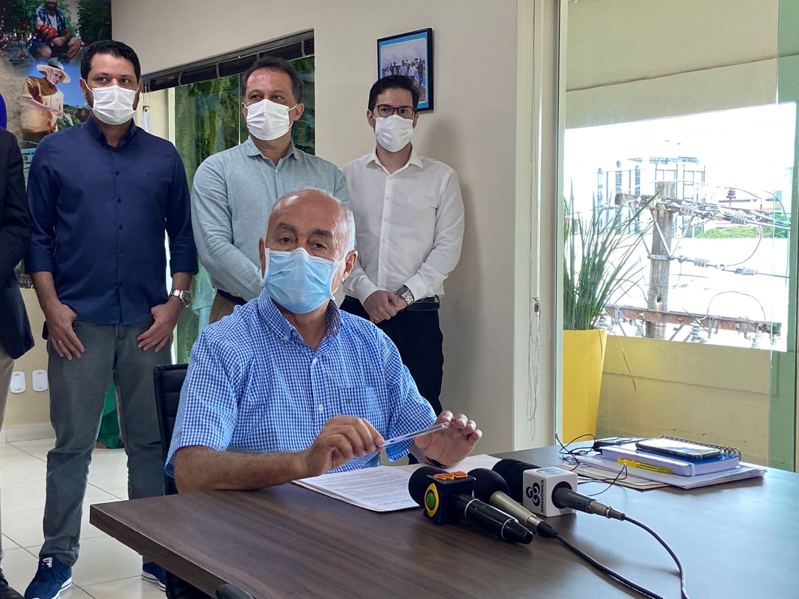 Durante coletiva à imprensa realizada nesta segunda-feira (20), o prefeito Tião Bocalom assinou o decreto que dispõe sobre a situação de emergência no serviço de Transporte Coletivo Urbano de Rio Branco.