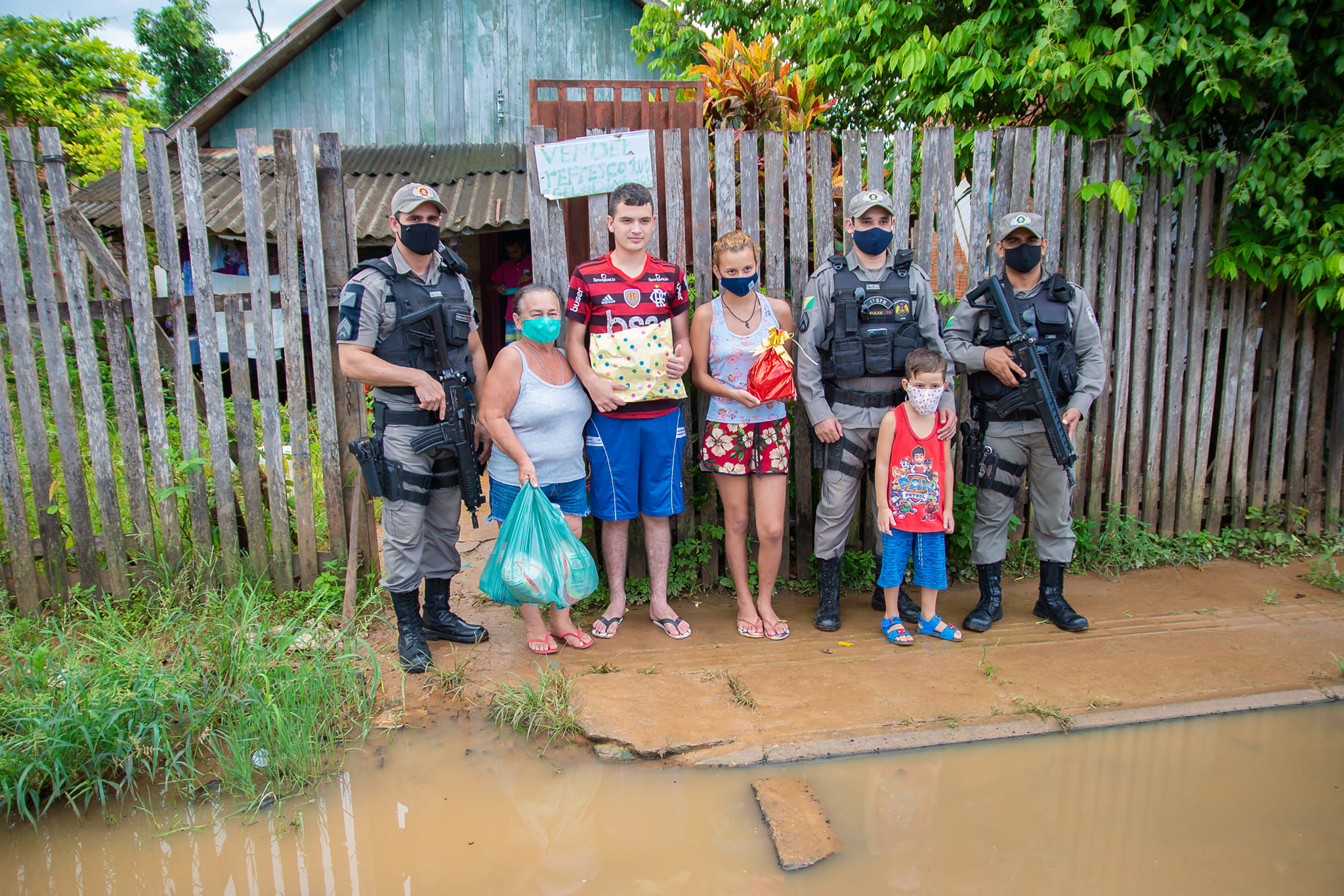 A entrega dos brinquedos e dos donativos ao Isaac e sua família faz parte de uma série de ações sociais da Polícia Militar do Acre (PMAC).