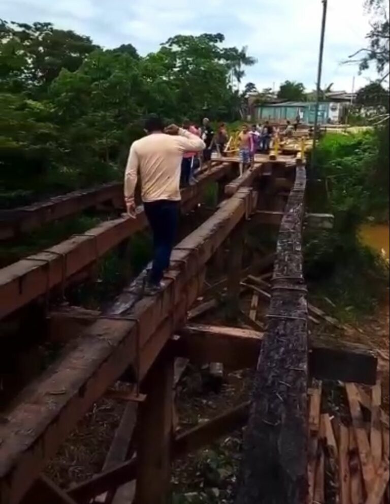 Um vídeo mostra a dificuldade dos moradores que precisam passar em cima de pedaços da estrutura da ponte para atravessar o igarapé. “Essa é a situação do povo aqui, arriscando a própria vida para chegar no trabalho”, diz um dos moradores que gravou o momento em que várias pessoas passam carregando bicicletas e sacolas.