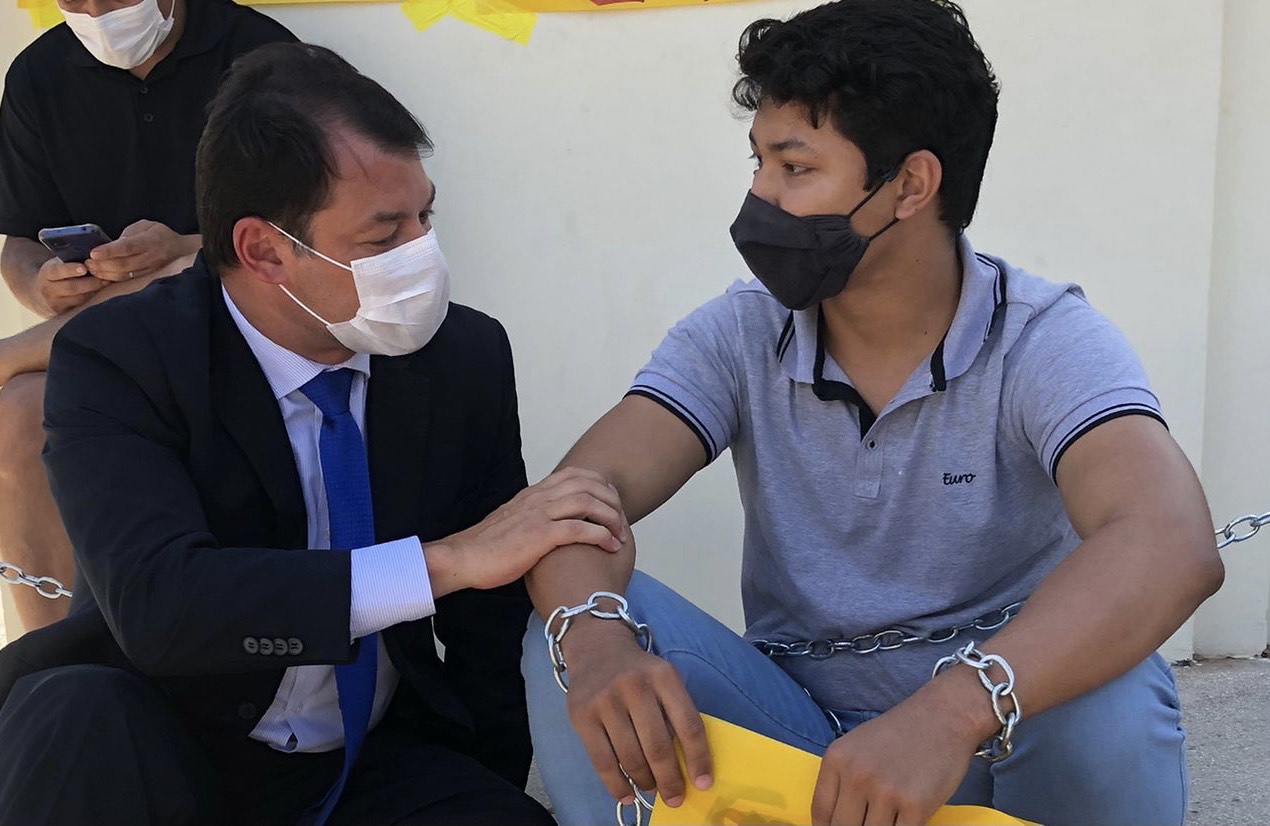 “Nós temos um ato de extremo desespero, um jovem se acorrentou em frente de dois poderes, por culpa de uma promessa não cumprida do governador Gladson Cameli. Ele veio de Cruzeiro do Sul em busca de seu sonho. Queremos ver o nome desses jovens no diário oficial, sendo convocados para a academia de polícia. Caso contrário, o governador vai precisar pedir perdão para esses jovens e seus familiares no mínimo.”, afirmou Roberto Duarte.