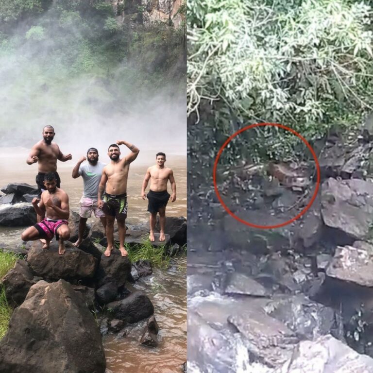 Em passeio, lutadores de MMA se deparam com sucuri gigante ‘tomando sol’ em cachoeira de MS