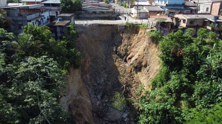 No sábado (1º), duas casas desabaram em Manaus por conta dessas deformidades no solo, chamadas de “voçorocas”, no bairro Cidade Nova, Zona Norte.