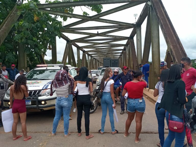 Familiares de detentos da Unidade Penitenciária Evaristo de Morais, em Sena Madureira, fecharam a ponte que dá acesso à cidade na manhã desta quinta-feira (3).
