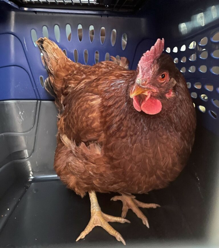 A Liga de Bem-Estar Animal de Arlington foi chamada para recolher a ave e devolvê-la a um galinheiro, disse a própria organização em sua conta do Facebook.