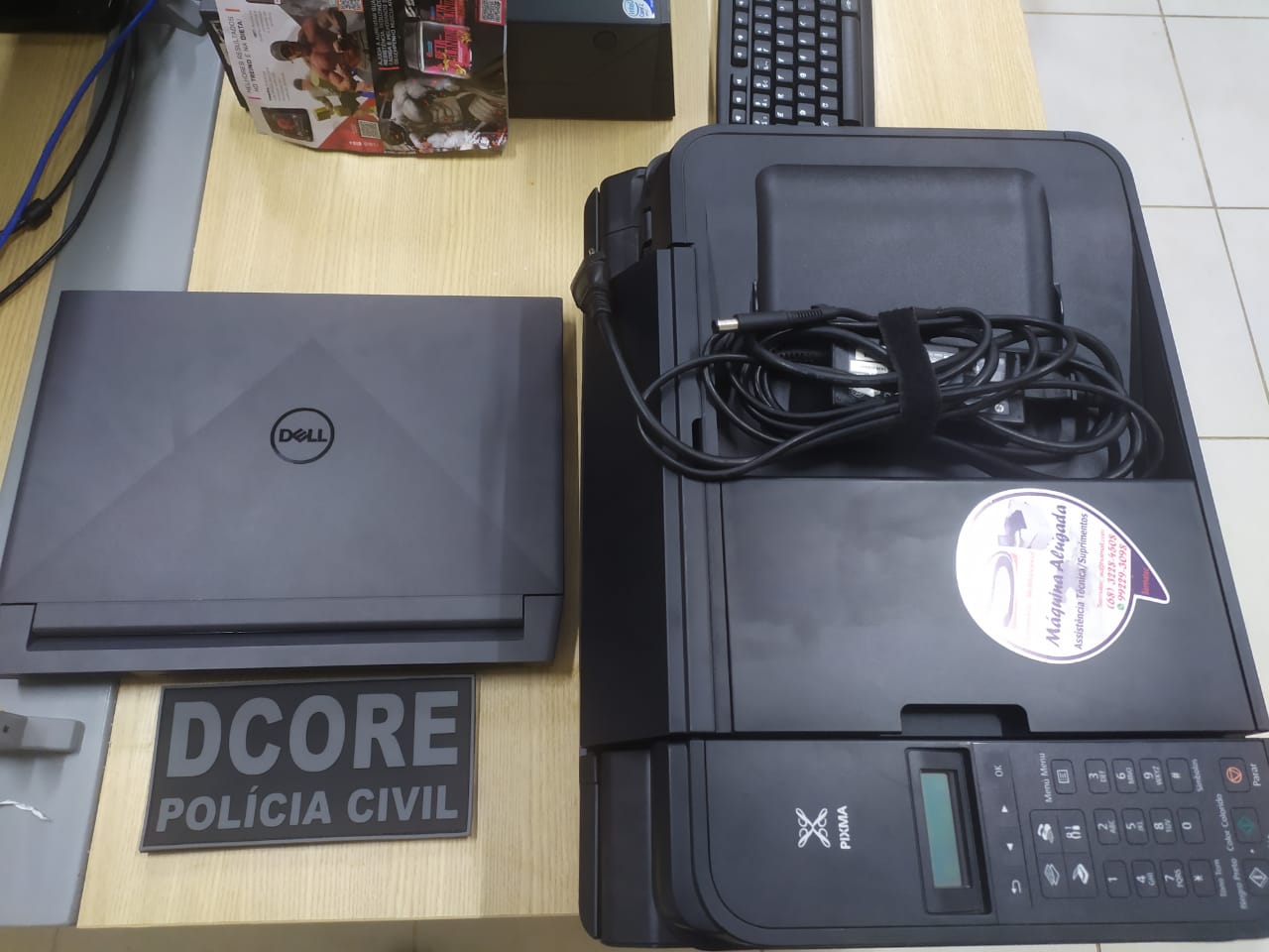 Após trabalho de investigação da Delegacia de Combate a Roubos e Extorsões (DCORE) na manhã de hoje, durante o cumprimento dos mandado de busca, recuperou o notebook e a impressora. O carro e a motocicleta foram abandonados em via pública no mesmo dia do roubo.
