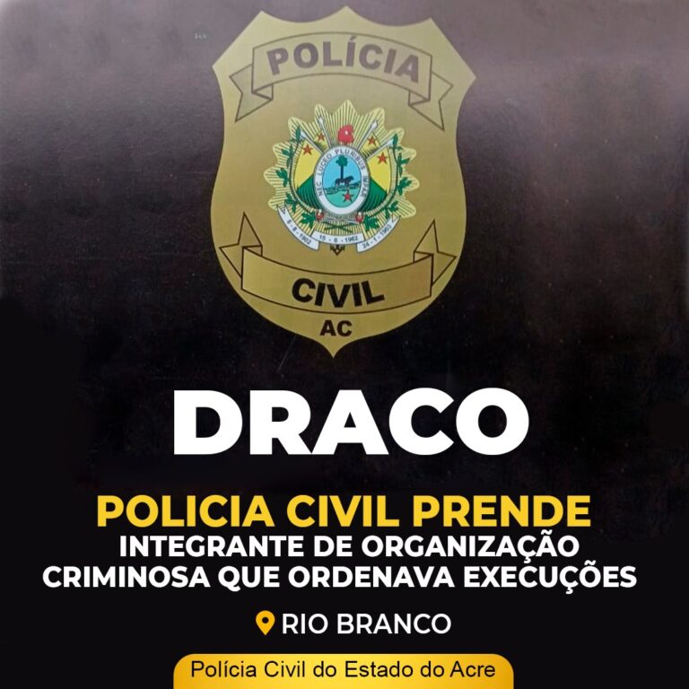 Na manhã desta segunda-feira, 14 de fevereiro de 2022, a Polícia Civil do Estado do Acre, por intermédio da DRACO – Delegacia de Repressão a Ações Criminosas Organizadas cumpriu mandado de prisão em desfavor de A.M. O, de 26 anos pela prática da conduta de integrar organização criminosa.