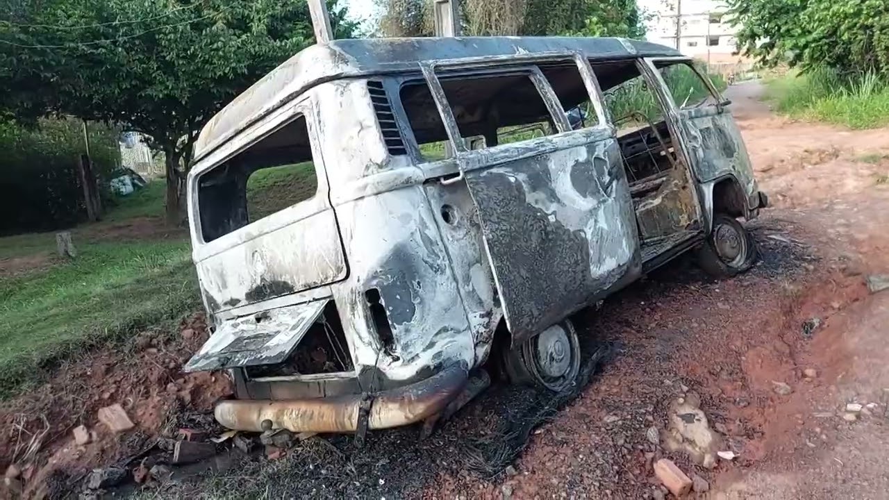 Um veículo modelo VW/Kombi teria acessado uma rua de chão e em dado momento, parece ter caído em uma vala atolando. Talvez, pela tentativa de sair do local, o motor aqueceu ao ponto de iniciar um incêndio.