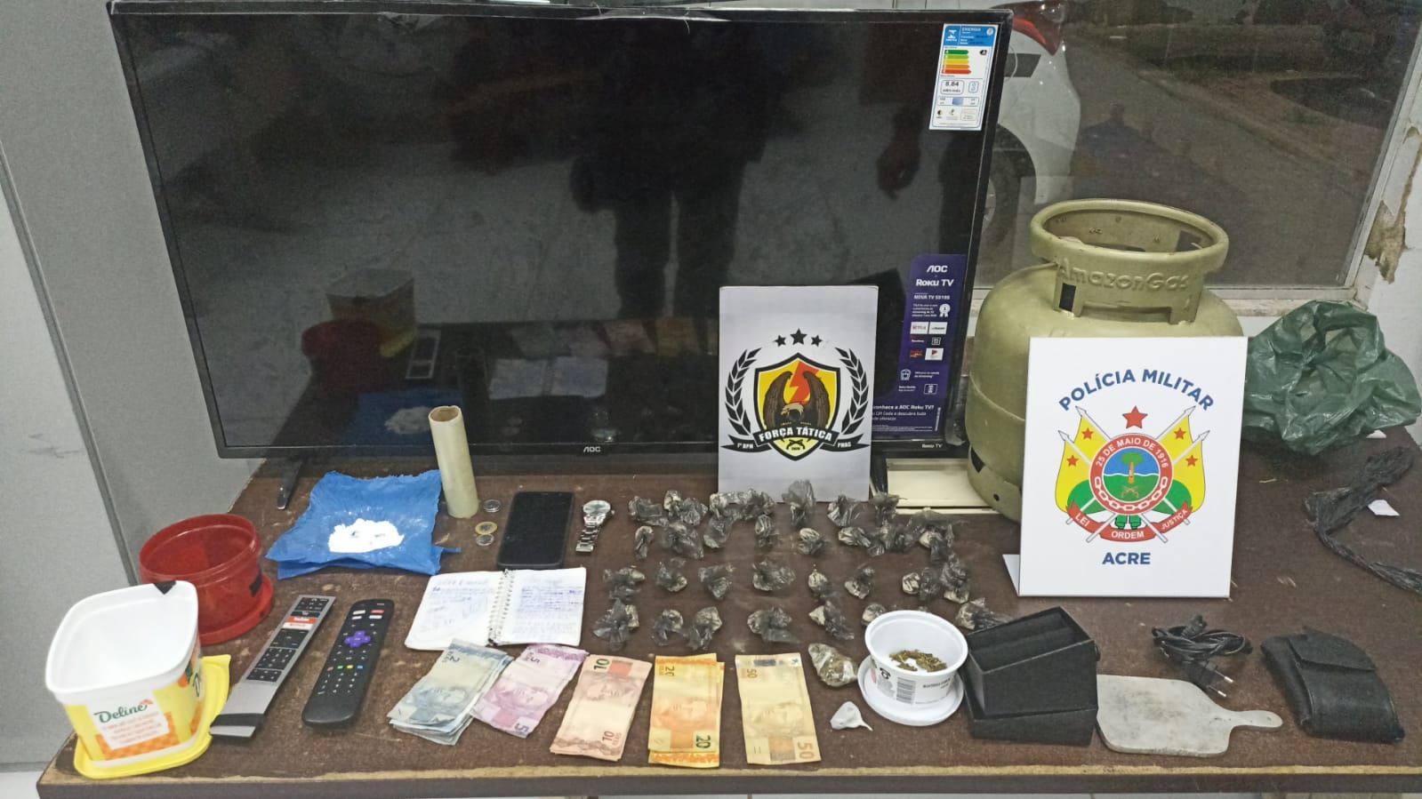 O quarteto visualizou a chegada da guarnição e tentou fugir da abordagem, adentrando em uma residência abandonada, mas os militares cercaram o local. Nada de ilícito foi localizado com eles, mas no interior da casa foram localizadas 32 trouxinhas de cocaína e dois tabletes de maconha, além da quantia de 194 reais.