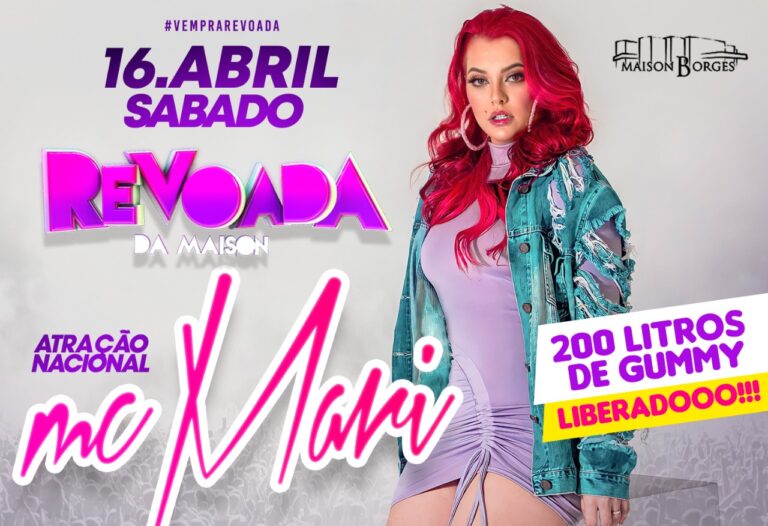Sábado acontece a Revoada da Maison com a presença nacional da MC Mari a baiana dona do hit “ Xereca de Mel” e “ Senta Concentrada” um feat com Léo Santana e MC WS. Corra e adquira seu ingresso para não ficar de fora!