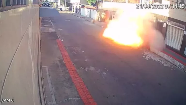 Um vídeo de câmera de segurança mostra uma explosão no imóvel no início da manhã.