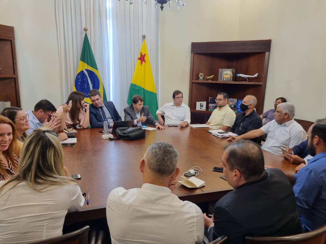 A equipe de secretários do governador Gladson Cameli e os assessores do senador Marcio Bittar (União Brasil), representados pelo 1º suplente do Senado, Eduardo Veloso, se reuniram nesta segunda-feira (25), no Palácio Rio Branco.