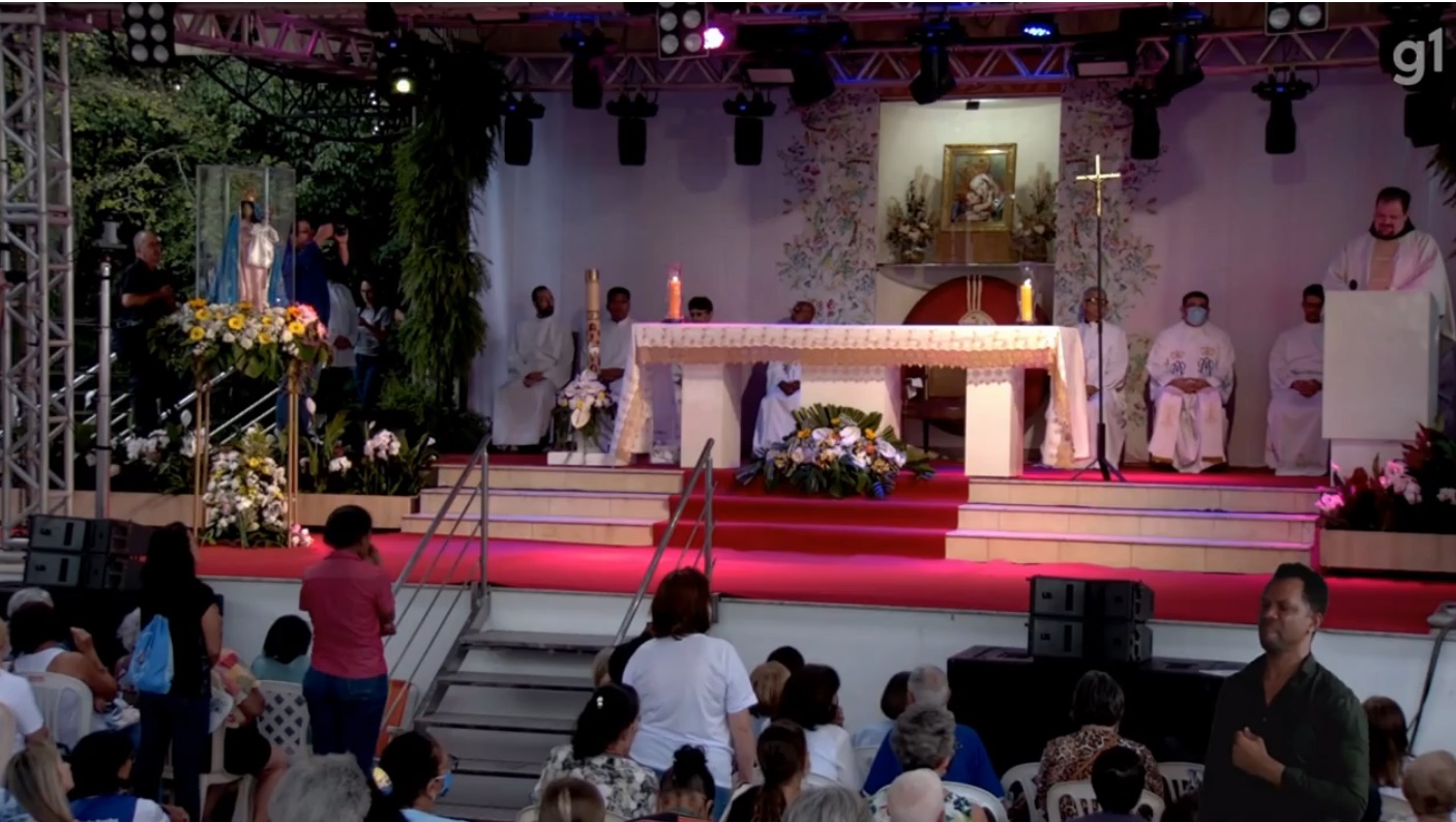 Durante a homilia, o vigário provincial Gustavo Medella pediu aos fiéis que prestassem atenção na música que seria colocada pelo técnico de som chamado de Vanderley.