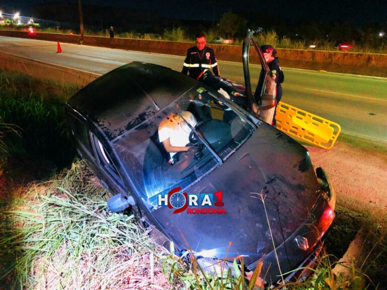 Nesta madrugada de terça-feira (24), a Polícia Rodoviária Federal fez o registro de uma grave acidente de trânsito, onde um homem de aproximadamente 35 anos, sendo ele o motorista de um carro, perdeu o controle da direção de seu carro na BR-364, vindo a colidir na mureta de proteção que divide as duas pistas e na sequencia ele caiu dentro de uma vala, ficando o motorista impossibilitado de sair do carro.