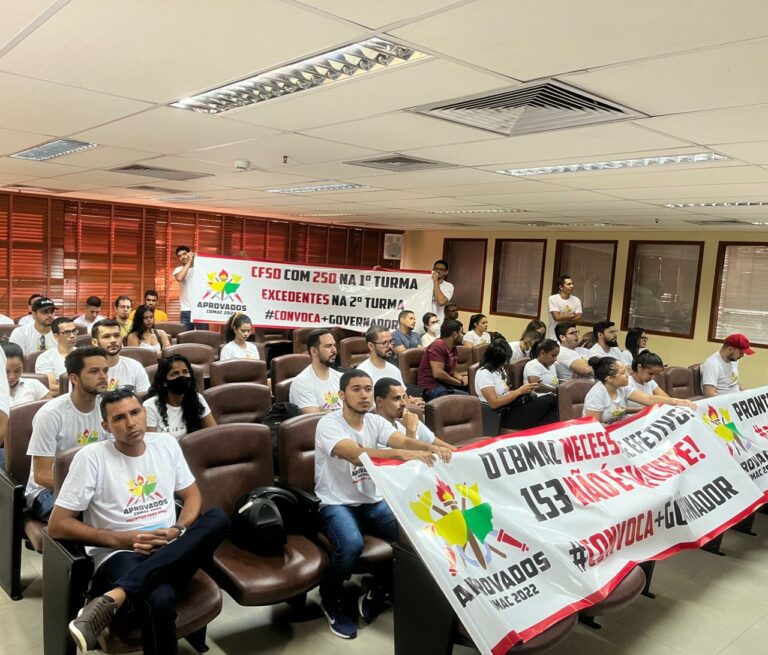 Aprovados no concurso do Corpo de Bombeiros ocupam o salão Marina Silva, na Assembleia Legislativa, para pedir o apoio dos deputados na convocação para o curso de formação.