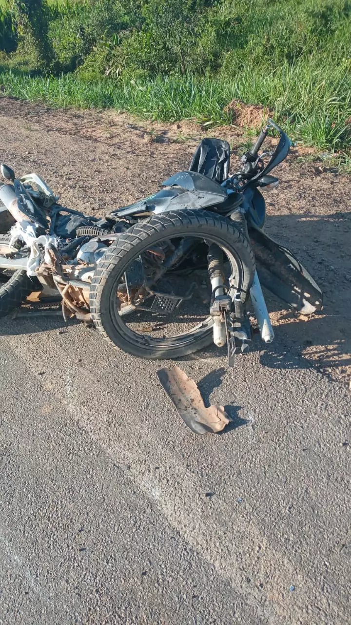 Em fotos que circulam nas redes sociais é possível notar que a motocicleta ficou totalmente danificada.