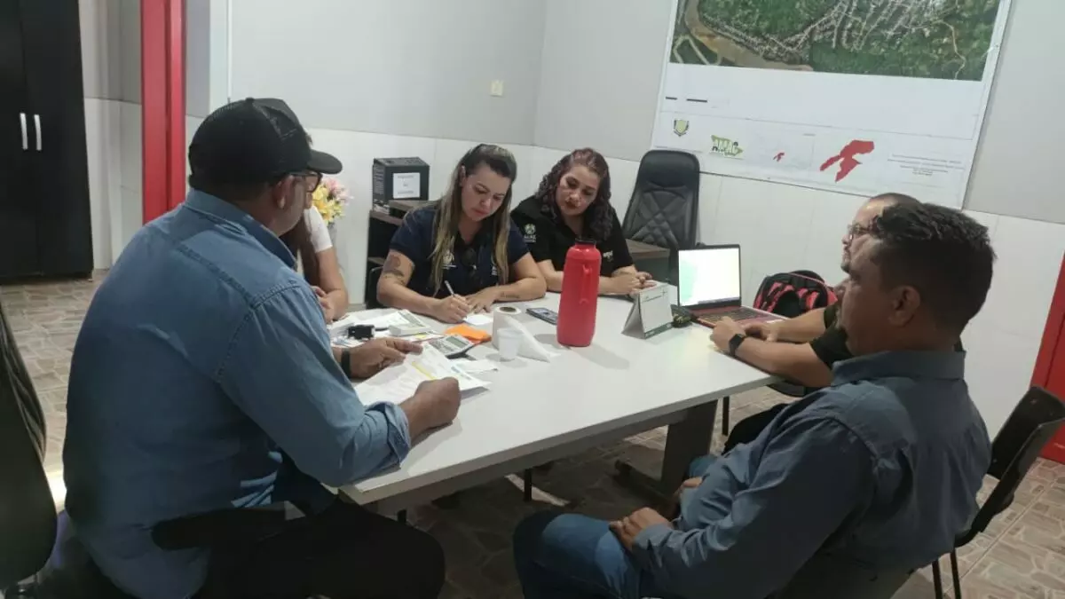 Reunião da equipe do Deracre com o prefeito de Santa Rosa do Purus. Foto: Deracre
