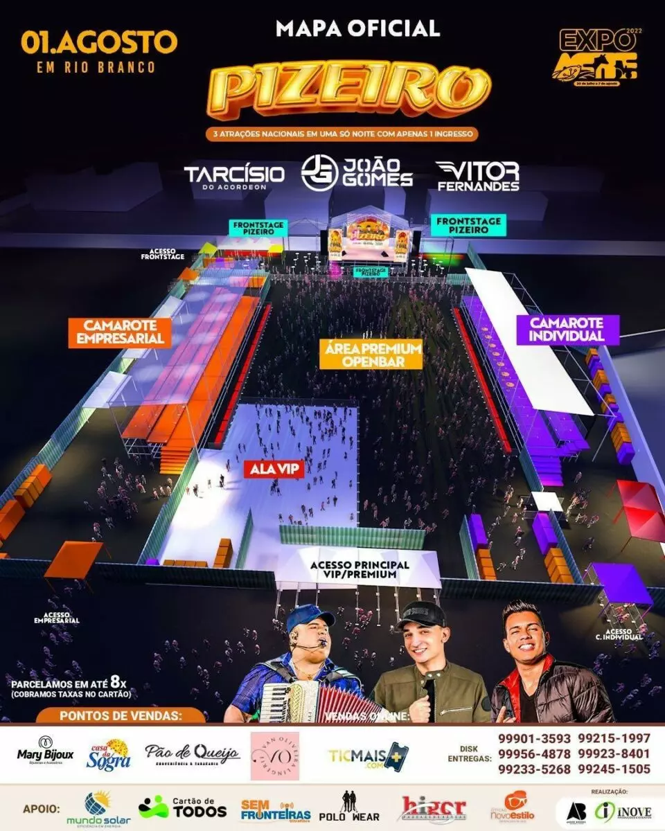 A previsão é que na última semana de vendas, todas as áreas estejam esgotadas. A procura está grande e o lote tá virando, então quem ainda não garantiu já entra em contato lá no Instagram @pizero_rb, ou então já liga para o disk entrega para você não perder O MAIOR EVENTO DE RIO BRANCO. E tem surpresa vindo aí…. aguardem!!!