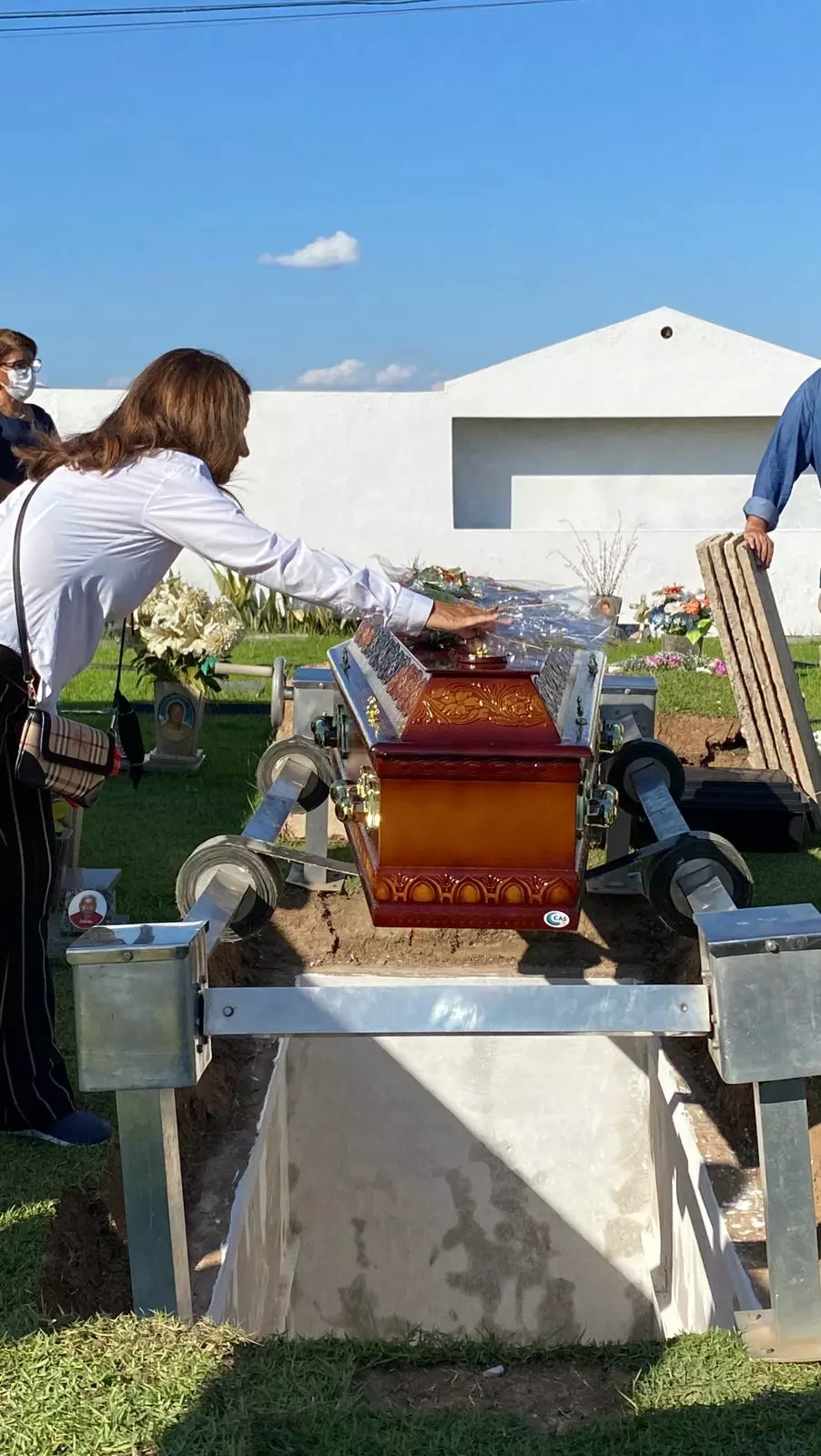 Durante o sepultamento, a família colocou flores sobre o caixão e se despediu de Dona Ivanilde com a canção “Segura na mão de Deus”.