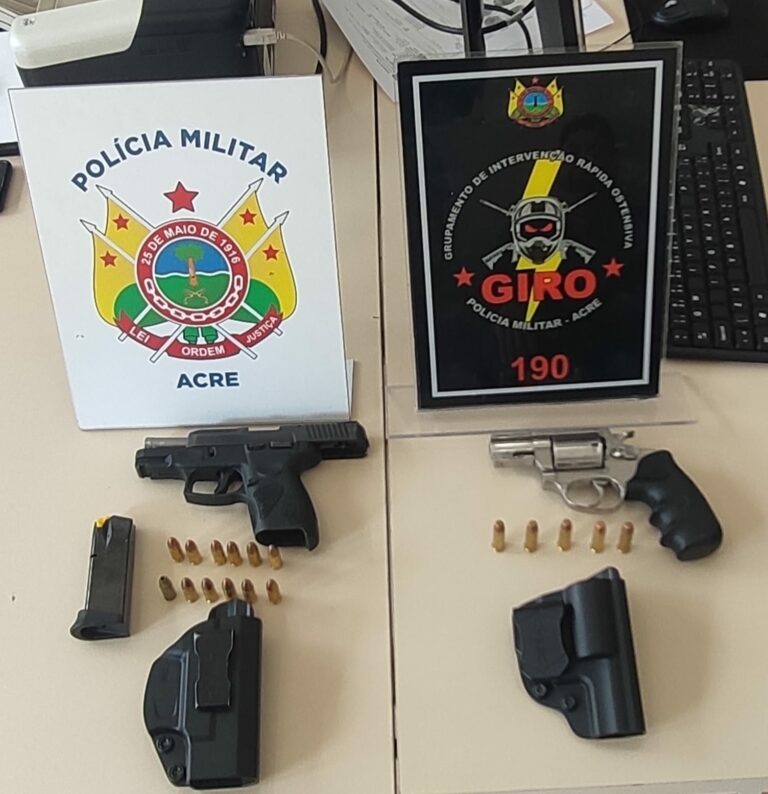 Uma Equipe do Grupo de Intervenção Rápida Ostensiva (GIRO) apreendeu no início da tarde desta segunda-feira, 25, duas armas de fogo, na Via Chico Mendes, região do 2° distrito da capital. Um homem de 40 e outro de 24 anos foram presos.