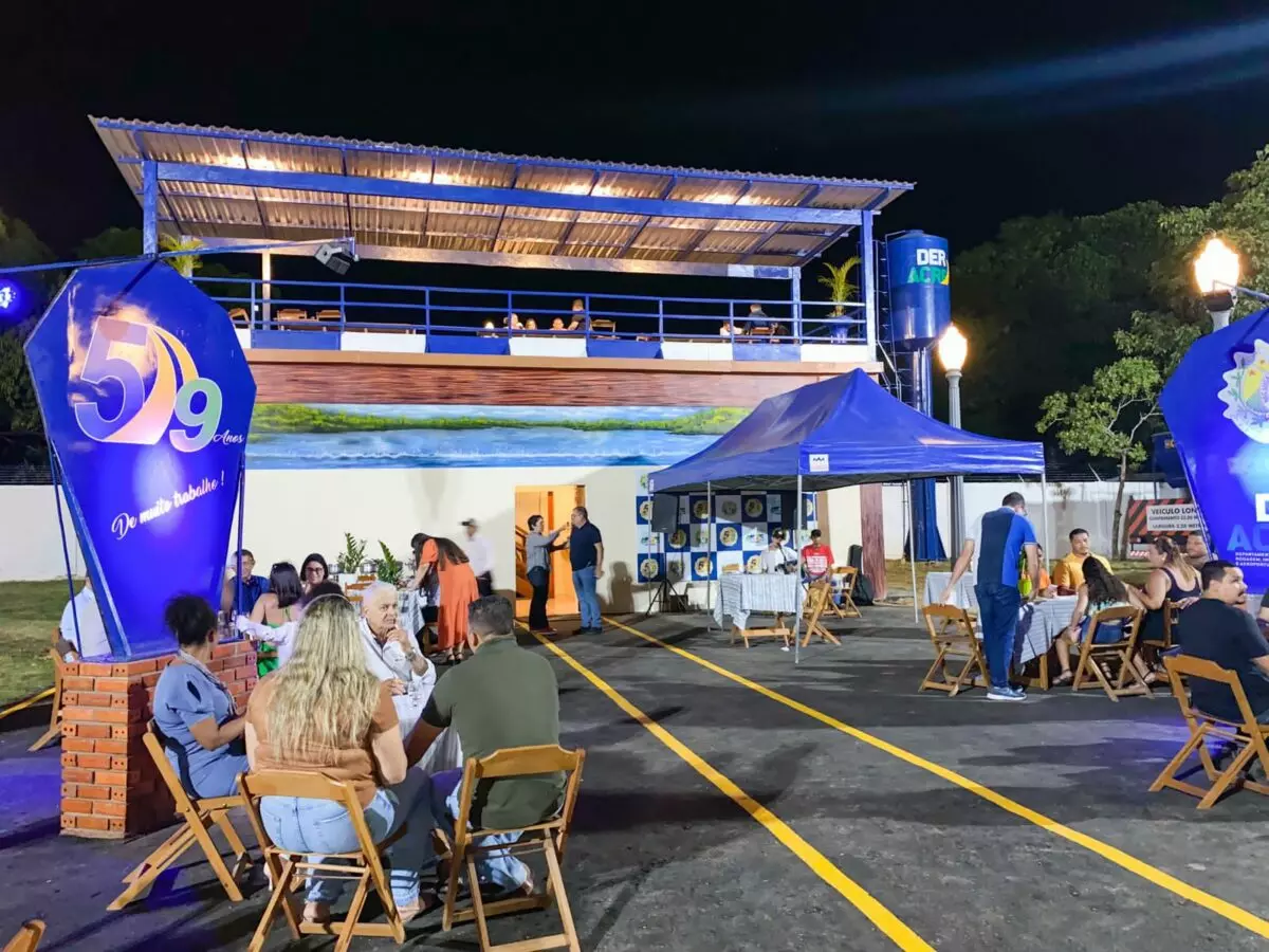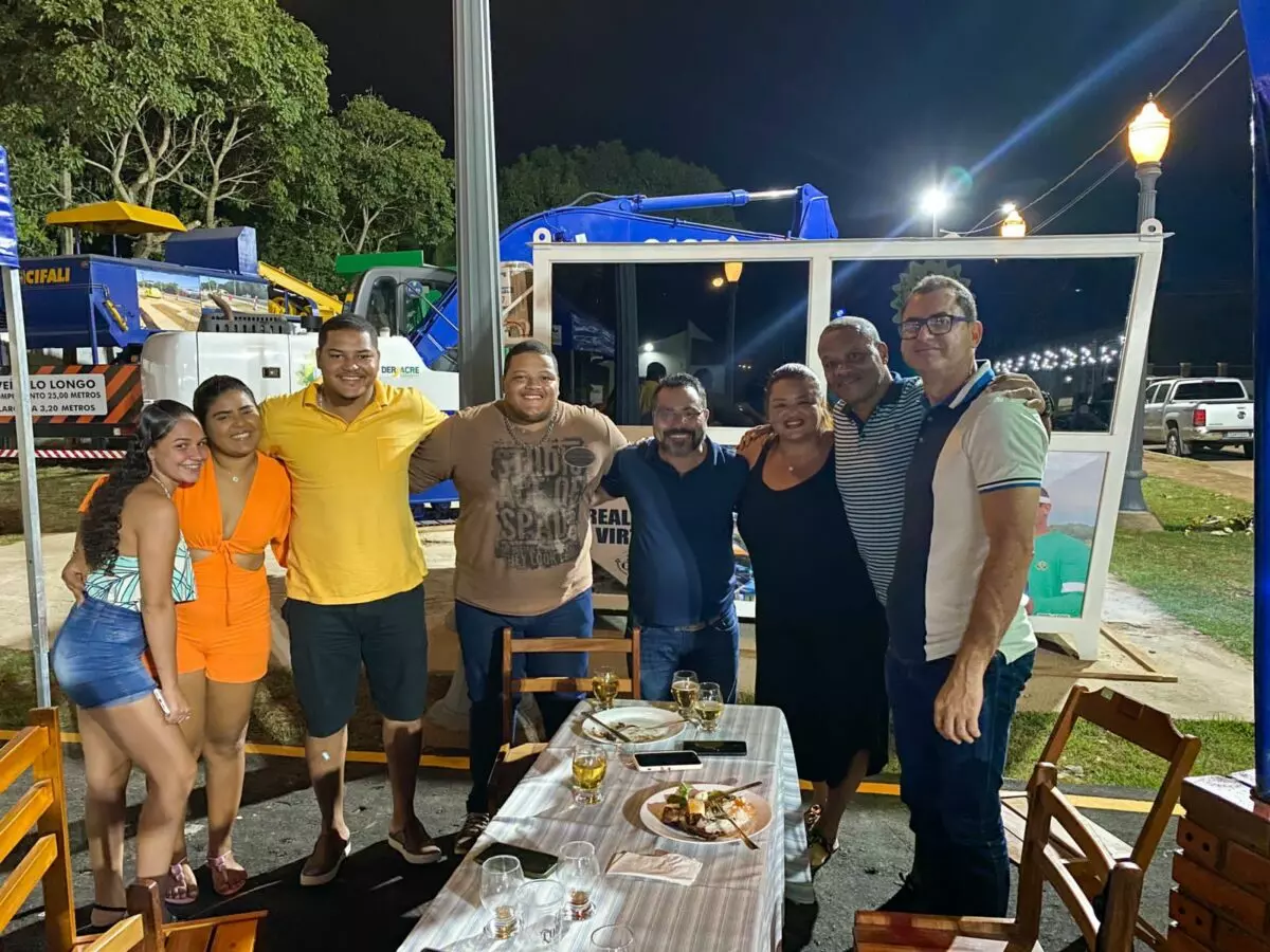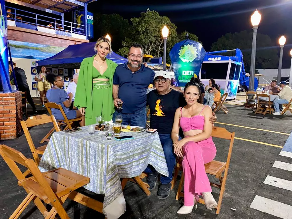 Para apresentar a estrutura do Deracre na feira desse ano, o diretor-presidente Petrônio Antunes convidou amigos próximos, representantes do Governo e servidores célebres da instituição para um jantar de apresentação do espaço. O evento aconteceu no sábado (16) e contou com as presenças especiais de: Assurbanipal Barbary (Seict), Glauber Feitosa (Iapen), Edivan Azevedo (Sepa), Cel. Messias (gabinete do governador), Francisco Thum (Idaf), Ticiane Pinheiro (Seet), Claire Cameli (Seasdhm), empresários Dorian Lessa e Wania Pinheiro, coordenadores da ExpoAcre Dudé Lima e Julio Cezar Moura de Farias, tido como um dos mais incansáveis na execução da feira; além de demais diretores de autarquia.