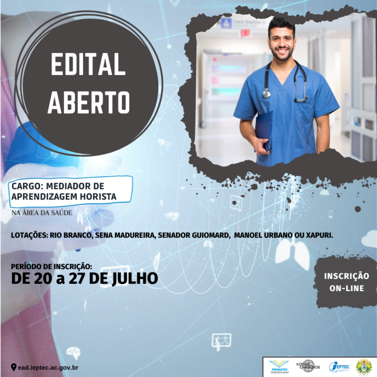 Para mais informações, o candidato deve acessar o edital disponível no portal do Ieptec: ead.ieptec.ac.gov.br, onde também estão disponíveis a ficha de inscrição e os demais anexos para preenchimento.
