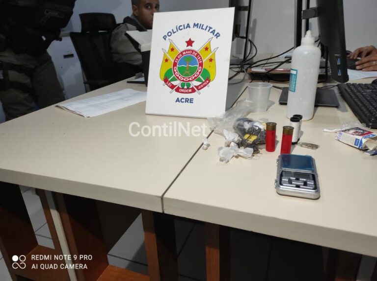 Diunes Souza de Oliveira, 27 anos, foi preso acusado de tráfico de drogas e porte de ilegal de munição de arma de fogo, na noite deste sábado (16), na rua São Francisco, no bairro Tancredo Neves, na parte alta de Rio Branco.