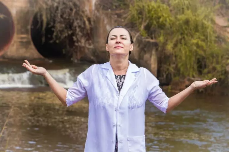 Marcia foi batizada nas águas pela pastora Eliana Vitalina, da Igreja Pentecostal Restauração. O evento aconteceu no Balneário Quinoá, na BR-364, por volta das 11h30.
