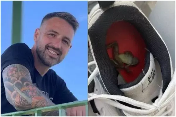 Gemma compartilhou uma imagem pelo Facebook, exibindo o anfíbio morto dentro do tênis Nike Air Max. Ela logo concluiu que o bicho havia “sufocado” com o cheiro do chulé do marido.