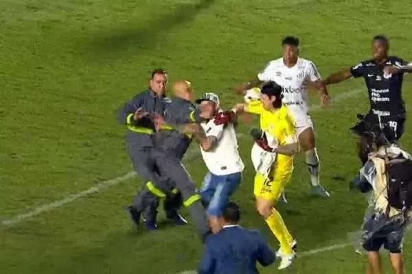 No fim da partida, um torcedor do Peixe invadiu o campo e chegou a agredir o goleiro Cássio, do time de Itaquera. O homem foi contido por seguranças e até mesmo por jogadores, que evitaram uma agressão mais grave ao arqueiro do Timão. Veja o momento: