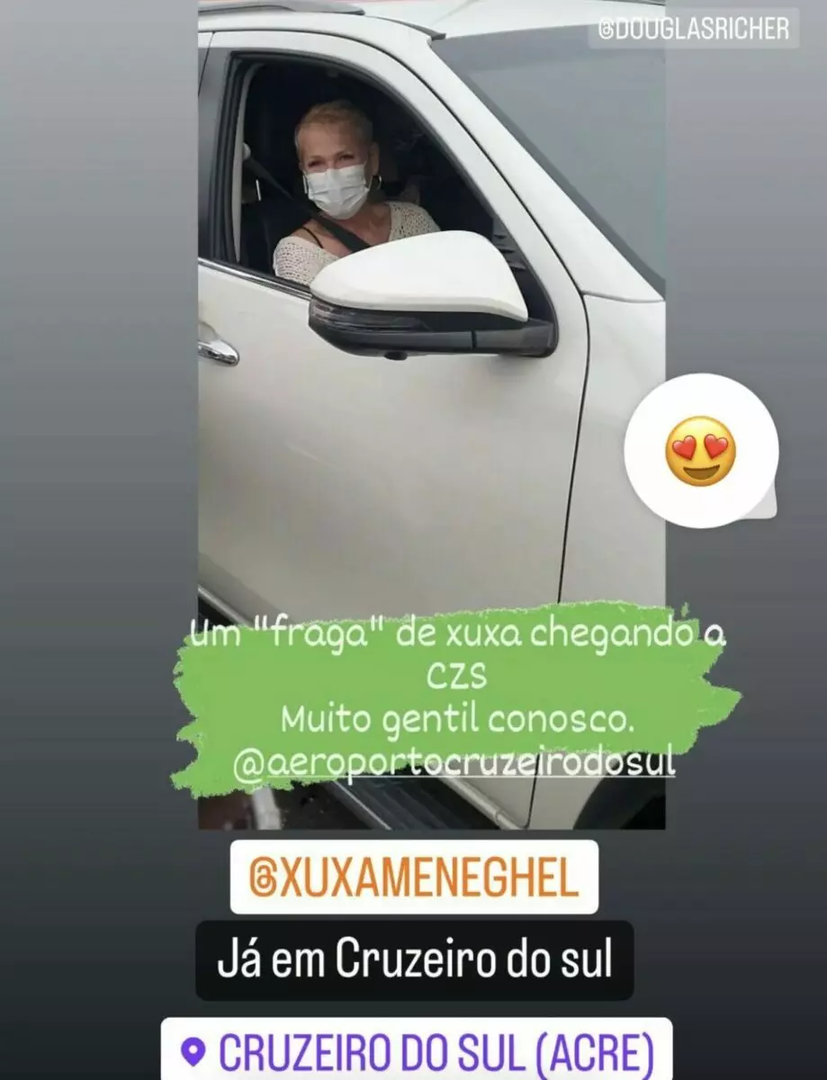 A foto do desembarque da apresentadora foi feito pelo radialista e influenciador cruzeirense, Patrick Tavares, que cedeu com exclusividade para o site ContilNet. Patrick ainda comentou em sua rede social que Xuxa foi muito gentil.