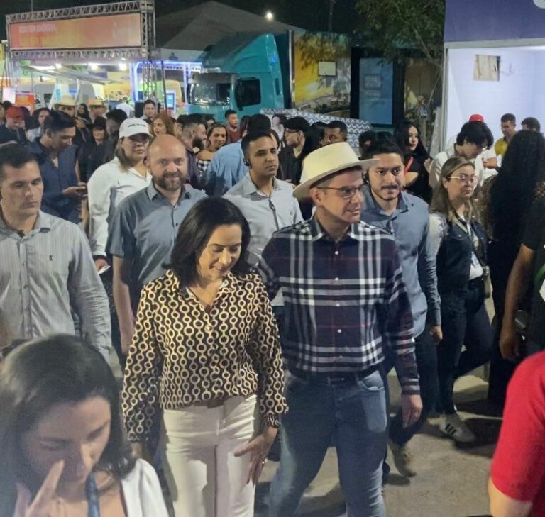 Cercados de profissionais de ambas as equipes, membros da imprensa e população que prestigia a feira, a dupla cumpriu agenda, ambos passearam pelo parque de exposições e Mailza acompanhou Gladson atentamente ao ceder entrevista a um veículo local.