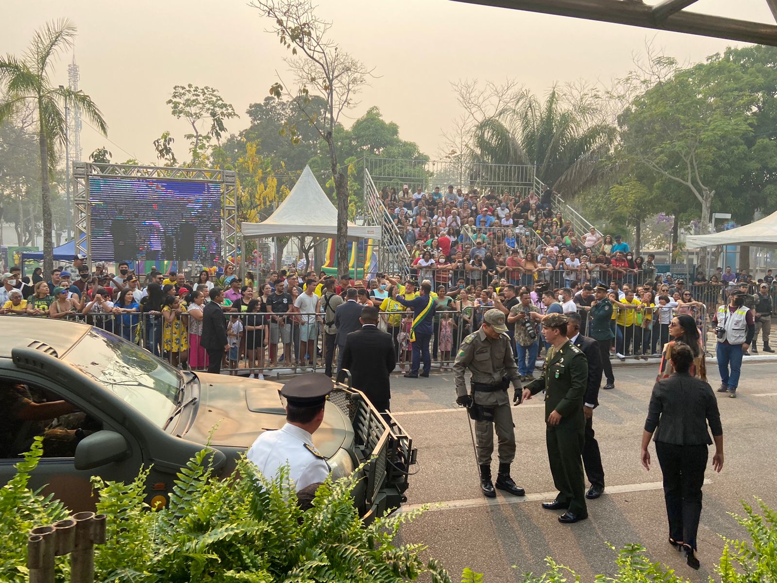 6. Comboio de Viaturas estaduais (6º bloco), com a Banda de Música da Polícia Militar – continua no recuo, depois desfila Polícia Militar (PM); Corpo de Bombeiros militar (CBMAC); Polícia Civil (PCAC); Viaturas da CIFTRAN; Samu (ambulâncias); Gefron – desfile de viaturas (Sejusp); Ciopaer (Sejusp) Helicóptero e a Banda de Música da Polícia Militar – sai do recuo e encerra o desfile.