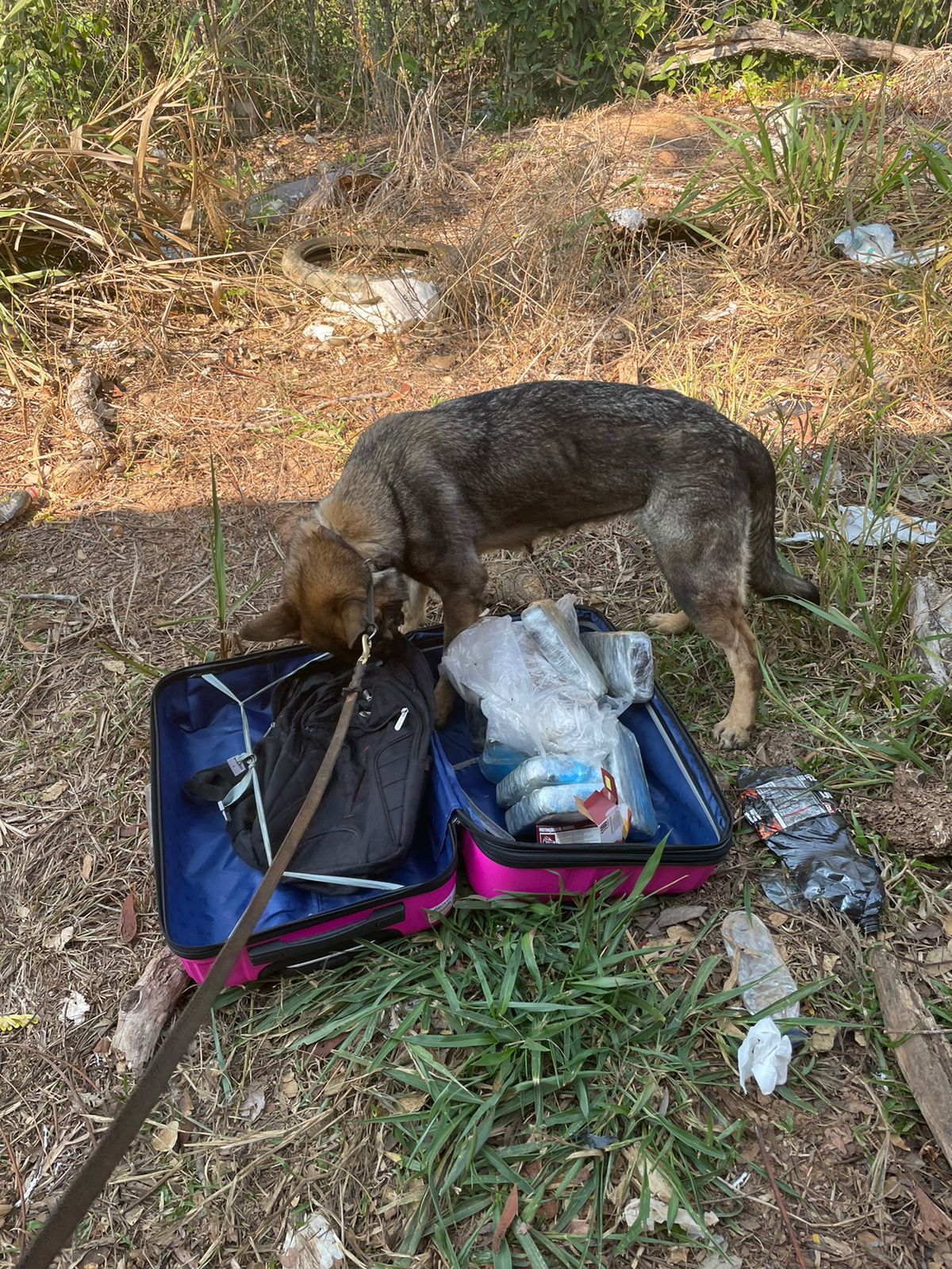 A cachorra Safira, da CPCães, foi utilizada para achar os 41 quilos do entorpecentes dentro das malas.