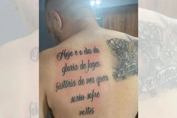 Um torcedor do Cruzeiro resolveu tatuar em suas costas um trecho da música “Salomé e Pablito”, do artista Das Quebrada, que se tornou uma espécie de hino da equipe mineira nesta campanha de 2022. No entanto, a homenagem acabou viralizando nas redes sociais por conta dos erros de português na letra da canção que agora estampa as costas do rapaz.