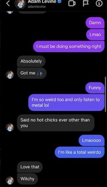 Já com Alyson, a outra mulher que expôs as conversas, o vocalista do Maroon 5 disse, ao saber que ela só ouvia heavy-metal, que “nenhuma outra garota gostosa como você disse isso.”