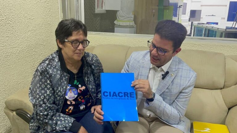 “É o primeiro projeto de alcance social de uma candidata a deputada estadual que recebo nesta campanha e que, com certeza, vamos executar”, disse o governador e candidato à reeleição Gladson Cameli ao receber das mãos da jornalista Wania Pinheiro proposta de criação do CIAC (Centro de Integração do Acre).
