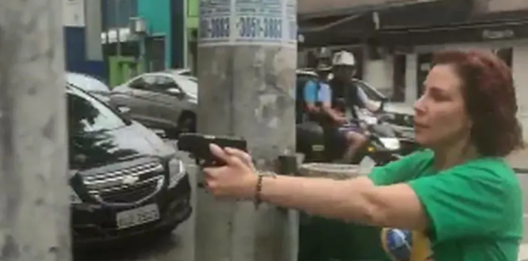 Com a arma em punho, ela atravessou a rua Joaquim Eugênio de Lima com a Alameda Lorena seguindo o homem. Ele entrou no bar e Zambelli foi atrás. No vídeo, é possível ouvir a deputada gritar: “Deita no chão”.