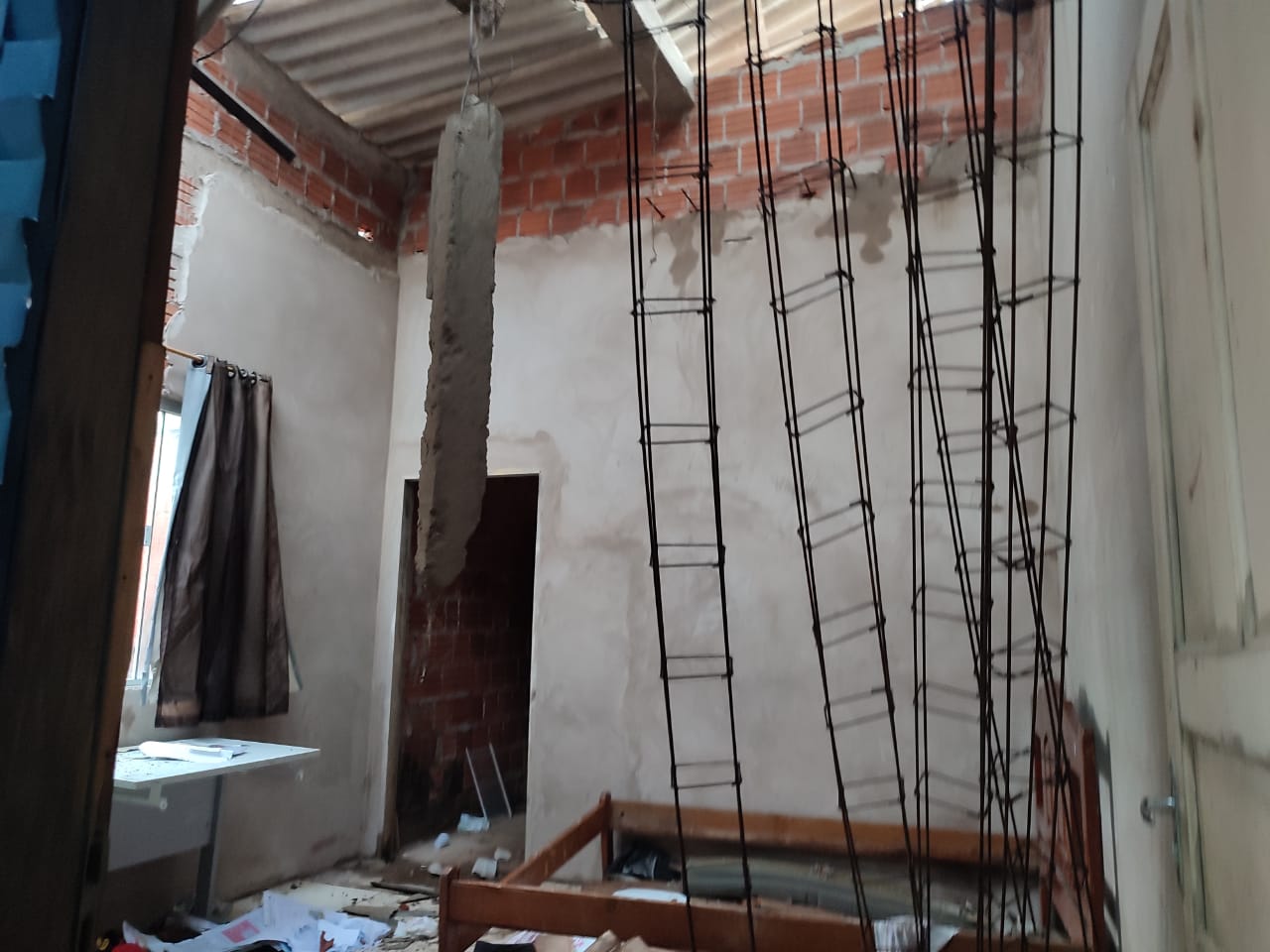 Os fortes ventos provocaram o desmoronamento de uma laje numa casa em reforma no loteamento Santa Luzia, no bairro Apolônio Sales.
