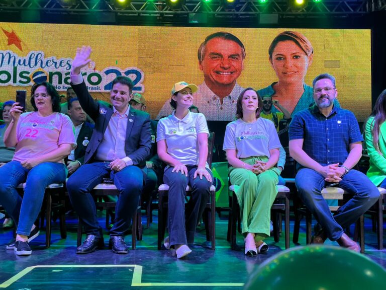 Políticos eleitos, fãs e militantes acolheram a primeira-dama do Brasil, Michelle Bolsonaro, com bandeiras e cartazes na Maison Borges, em Rio Branco.