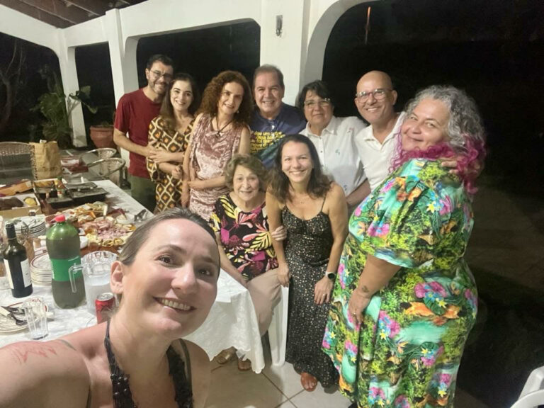 Foi em torno da jornalista Nena Mubarac – que reside atualmente em Santo (SP) – o reencontro de alguns amigos das antigas, para uma noite de muita conversa e vinhos. A tertúlia foi organizada pelo casal Luís Lambert e Nazaré Araújo, ao lado da mãe D. Maria Lúcia Araújo (viúva de José Augusto, primeiro governador escolhido pelo voto popular, após a criação do Estado do Acre), e reuniu também para altos papos: Andrea Zílio, Karla Martins, Dande Tavares, Márcia Regina Pereira, Marlúcia Cândida e Tião Viana.
