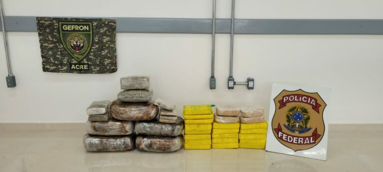 Polícia Federal, em parceria com o Grupo Especial de Fronteiras (Gefron), apreendeu, na última quinta-feira (29), por volta das 12 horas, aproximadamente 39 quilos de entorpecentes, na BR 317, saída de Epitaciolândia para Rio Branco.
