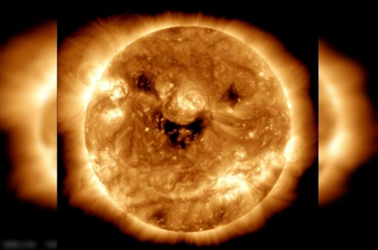 A sonda Solar Dynamics Observatory da Nasa, a agência espacial norte-americana, flagrou o Sol “sorrindo” em uma imagem impressionante divulgada nesta semana.